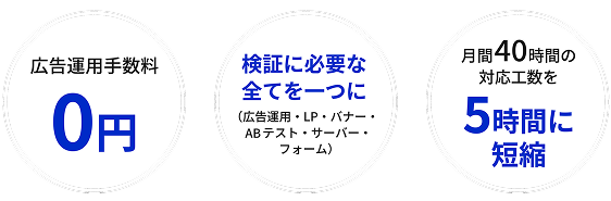 制作から検証までをワンチームで対応。広告とLPの連携ミスなどもなくし効率よく広告運用ができます。